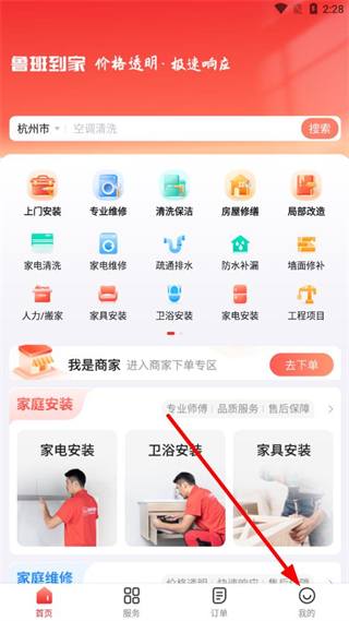 1、打开鲁班到家app,点击底部导航栏中的我的选项。