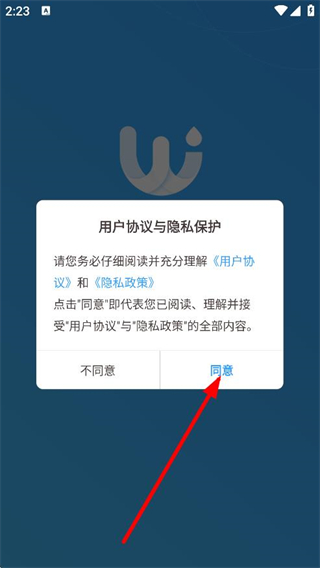 1、在用户协议与隐私保护弹窗中,点击同意,进入APP主界面。