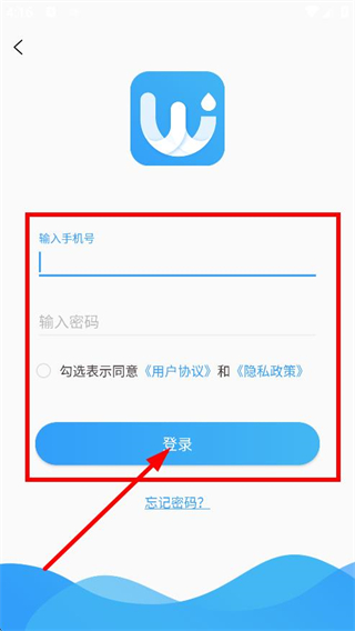 3、在登录页面,输入手机号、密码,点击登录,完成登录操作。