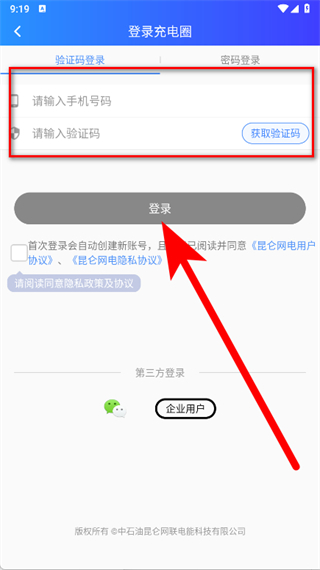 4、先输入手机号码,接着点击获取验证码,收到验证码后输入,再勾选相关协议,点击登录按钮,完成注册。