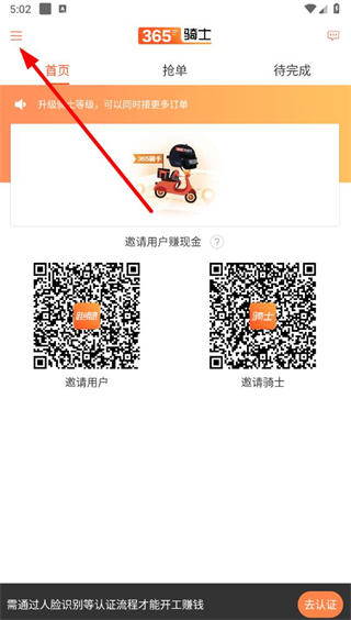 1、打开365骑士app,点击左上角的菜单图标,展开侧边栏。
