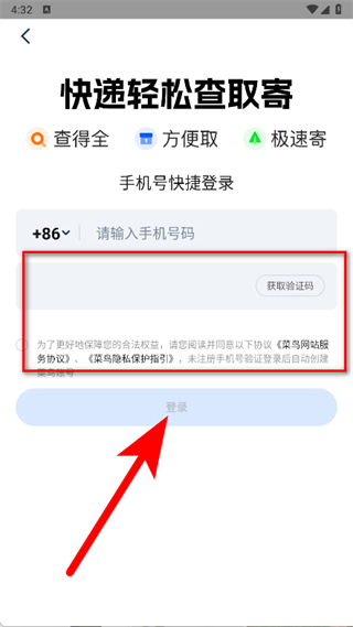 4、输入收到的验证码后,点击登录按钮,完成注册登录。