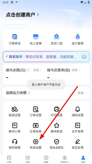 1、打开蜂鸟跑腿app,点击底部导航栏中的我的选项。