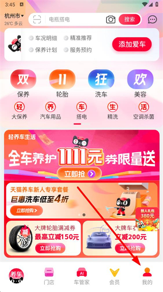 1、打开天猫养车app,点击底部导航栏中的我的选项。