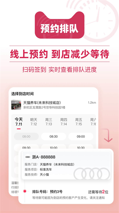 目前已上线洗车、美容、保养、更换轮胎、维修等服务!