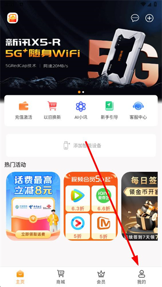 1、打开新讯app,点击底部导航栏中的我的选项。