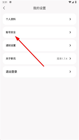 3、在我的设置页面,点击账号安全选项,进入账号安全页面。