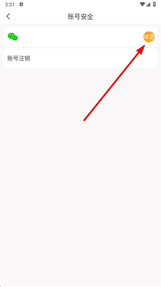 4、在账号安全页面,点击微信右侧的绑定按钮,按照提示完成微信绑定操作。