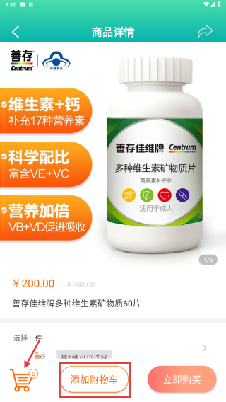 3、在商品详情页,点击添加购物车按钮,将商品加入购物车。