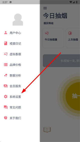 1、打开今日抽烟app,点击左上角的三条横线图标。