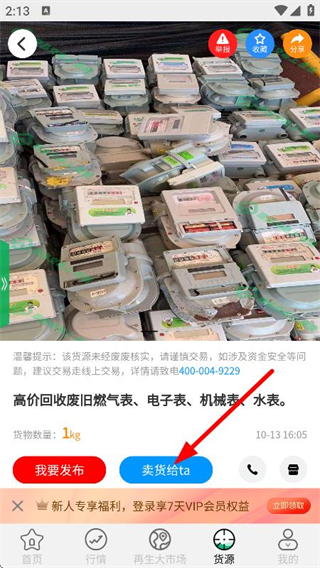 3、在货源详情页面,点击卖货给ta,弹出卖货信息填写弹窗。