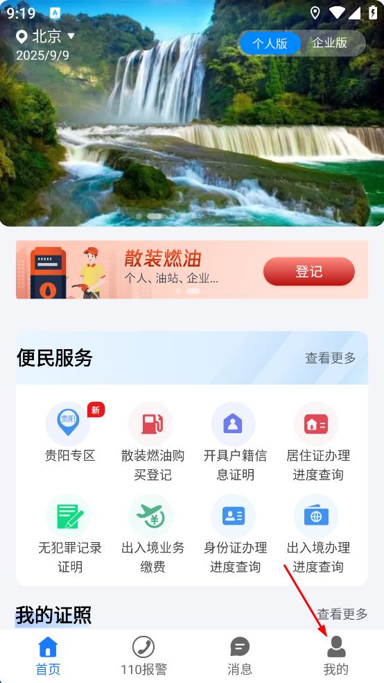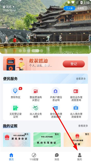 1、打开贵州公安app,点击底部导航栏中的我的选项。