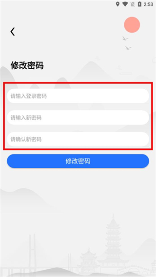 3、在修改密码页面,输入登录密码、新密码并确认新密码。