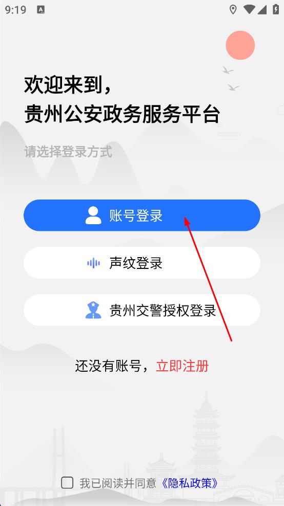 3、在登录选择页面,点击“账号登录”选项,进入账号登录界面。