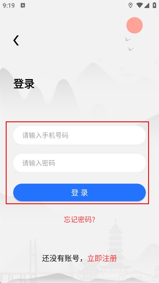 4、在账号登录界面,依次输入手机号码和密码,然后点击“登录”按钮,完成登录操作。