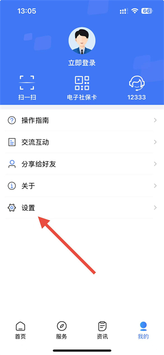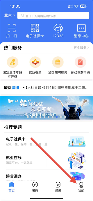 1、打开掌上12333app,点击底部导航栏中的我的选项。