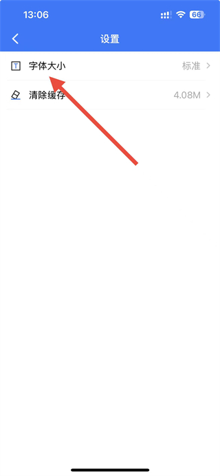 3、在设置页面,点击字体大小选项,进入字体大小调整页面。