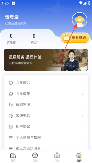 1、进入礼住,在首页点击底部我的,进入个人页面。