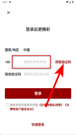 4、输入短信验证码,勾选同意相关协议后,点击登录,完成注册。