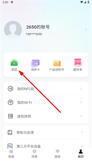 2、进入我的家庭页面后,点击头像区域进入家庭管理页面。