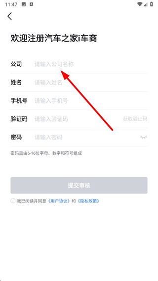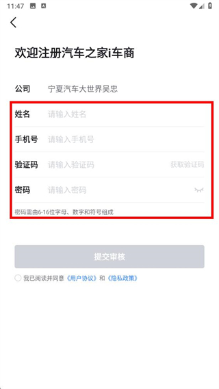 4、勾选我已阅读并同意用户协议和隐私政策,点击提交审核,待审核通过后即可激活账号。