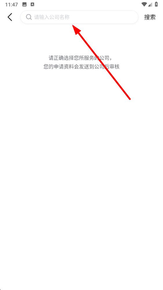 2、在注册页面中,点击公司输入框,搜索并选择所属公司。