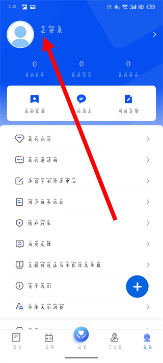 2、进入我的页面,点击去登录选项,进入登录页面。
