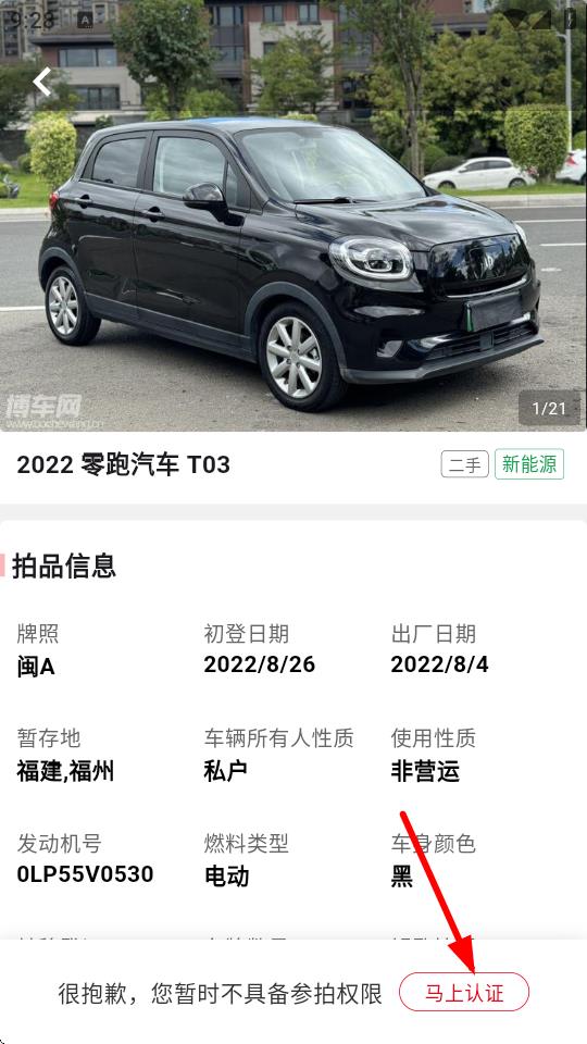 4、在车辆详情页面,可查看车辆的更多详细信息,若未认证可能会提示认证,按指引操作即可。