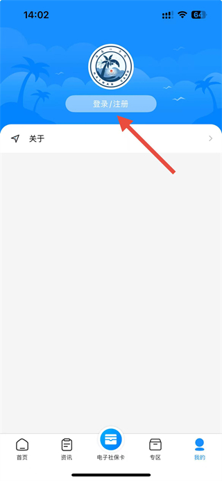 2、在个人页面中,点击登录注册按钮进入登录页面。