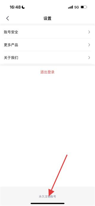 3、在设置页面,点击永久注销账号,进入注销账号页面。