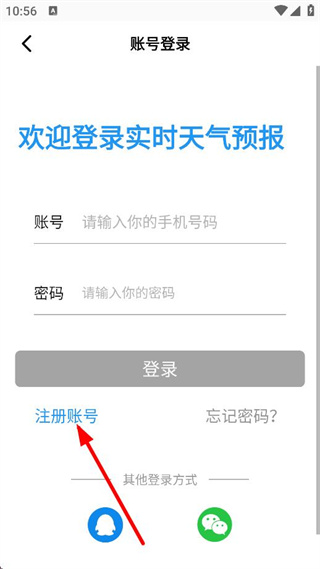 3、在账号登录页面,点击【注册账号】,进入账号注册页面。