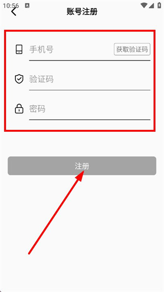 4、在账号注册页面,输入手机号、验证码、密码后,点击注册,完成账号注册。