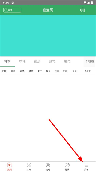 1、打开查宝网app,点击底部导航栏的菜单选项。