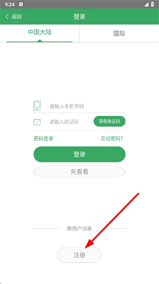 3、在登录页面中,点击注册选项进入注册页面。