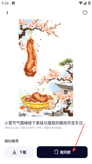 3、在图片详情页面,点击做同款,可进行同款图片制作。