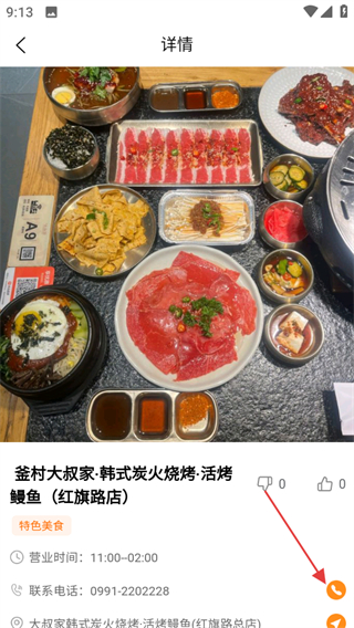 4、进入美食详情页面,可查看店铺的信息,还能点击电话图标联系商家。