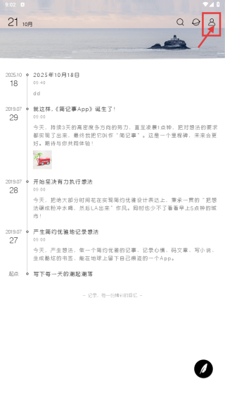 1、打开简记事应用,点击右上角个人中心图标,进入我的页面。