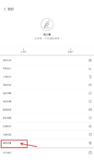 2、在我的页面,点击通用设置选项,进入通用设置界面。