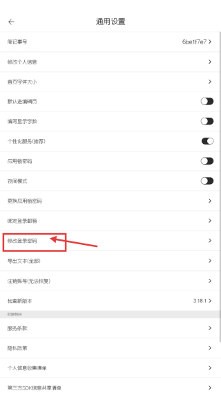 3、在通用设置界面,点击修改登录密码选项,进入修改密码流程。