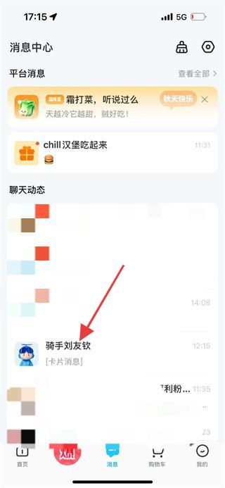 2、在消息中心页面,点击骑手聊天入口,进入与骑手的聊天页面。