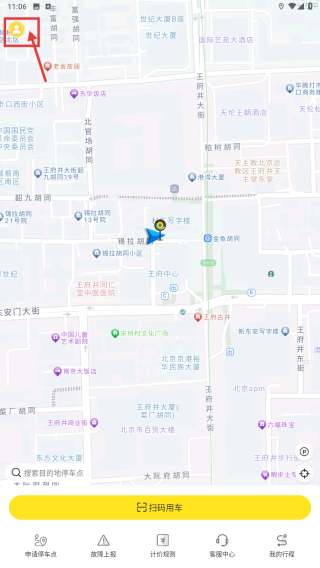 1、打开出行应用,点击左上角个人中心图标,进入个人功能页面。