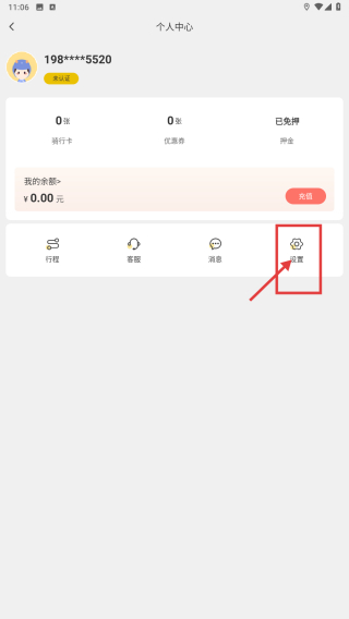 2、在个人功能页面,点击设置选项,进入设置功能列表。