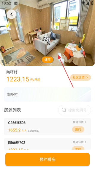 2、在房源详情页面,点击细节可查看房源的细节图片。