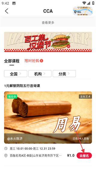 3、在课程页面,找到心仪课程后点击去报名可进入报名流程。