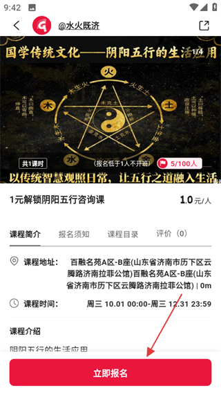 4、在课程详情页,点击立即报名可完成课程报名操作。