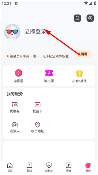 2、在个人中心页面,点击立即登录,进入登录选择页面。