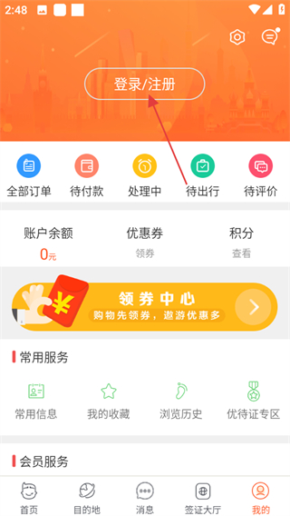 1、打开中青遨游旅行,点击页面右下角我的,可进入个人相关页面。
