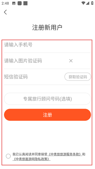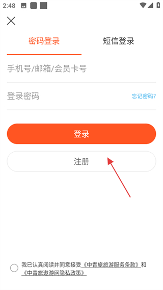 3、在登录注册页面,点击注册即可进入注册新用户页面。