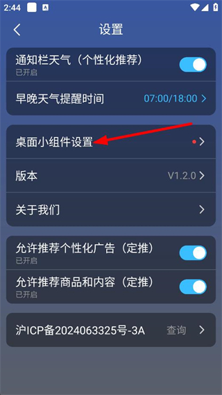 3、在设置页面,点击桌面小组件设置,进入桌面小组件页面。