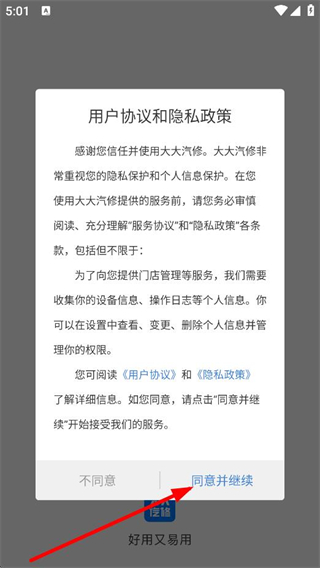1、在用户协议和隐私政策中,点击同意继续,进入登录页面。